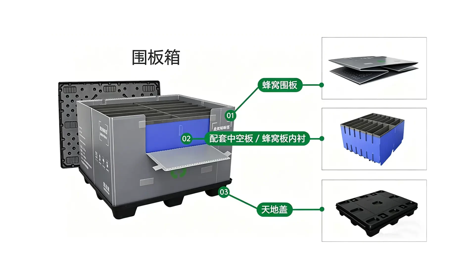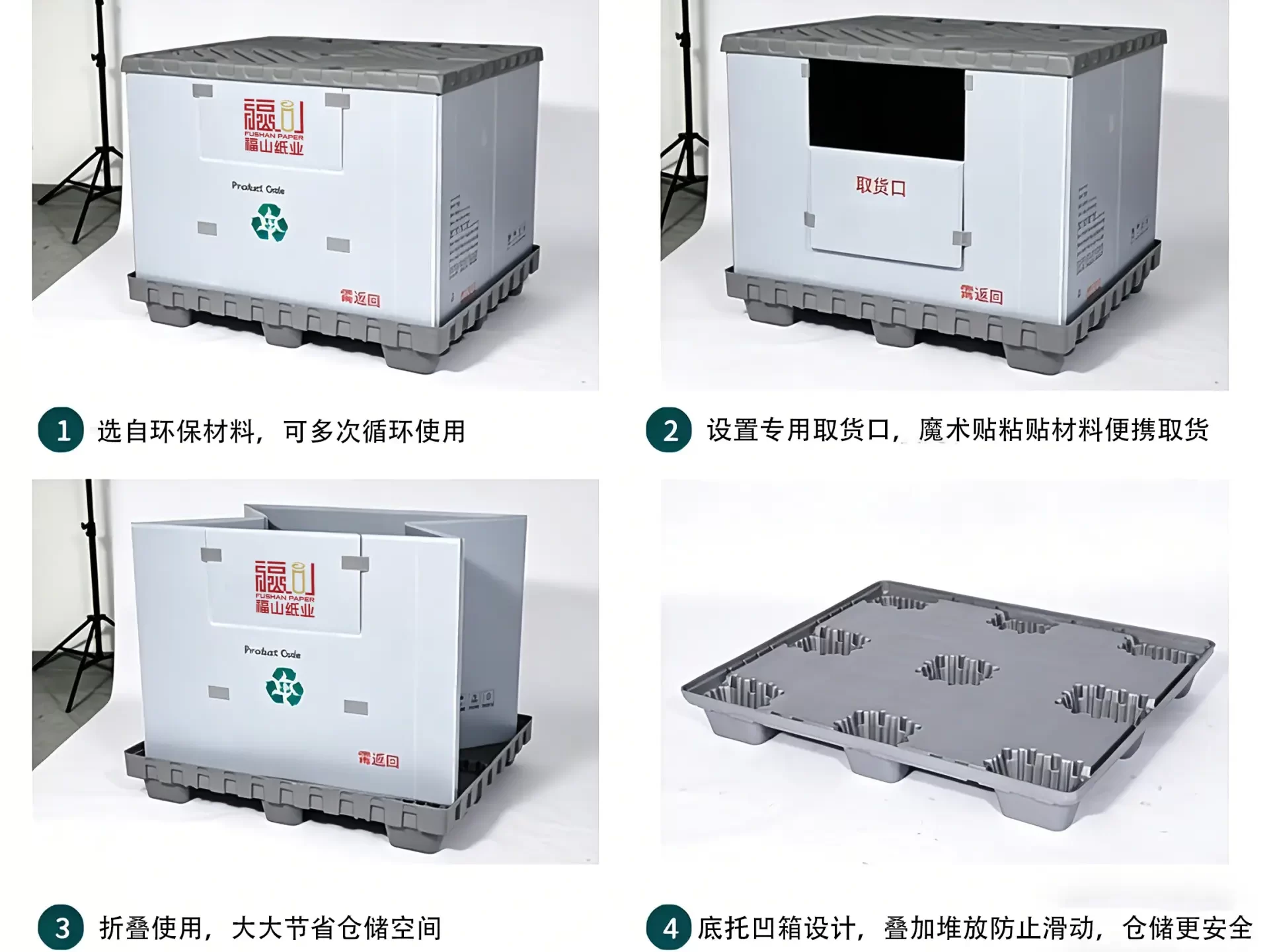 耐用环保:增强型 PP 蜂窝板抗折强度提升 30%,折叠次数达 30000 次以上;100% 可循环回收,防潮防腐、无毒无污染,长期使用成本更低。